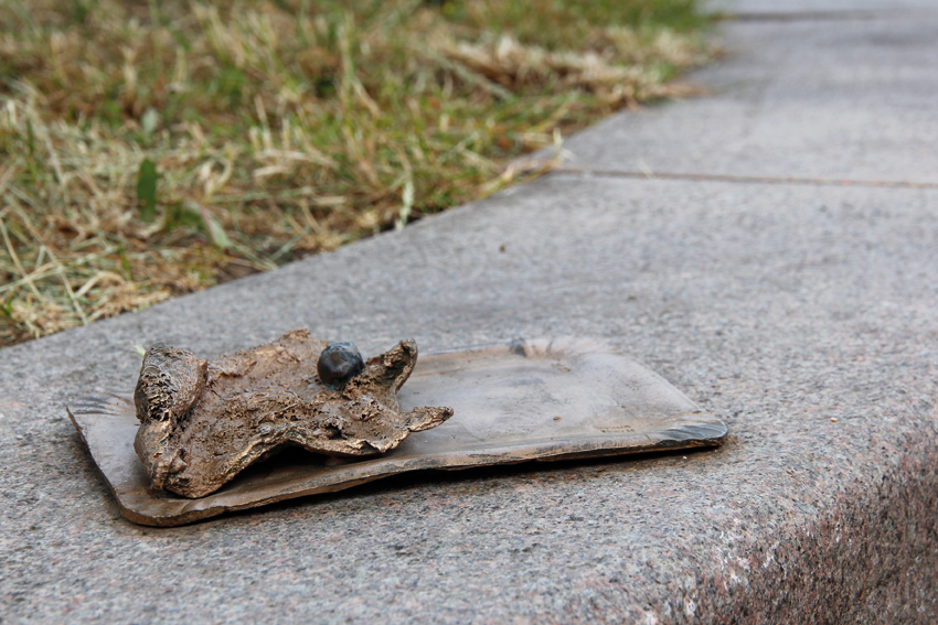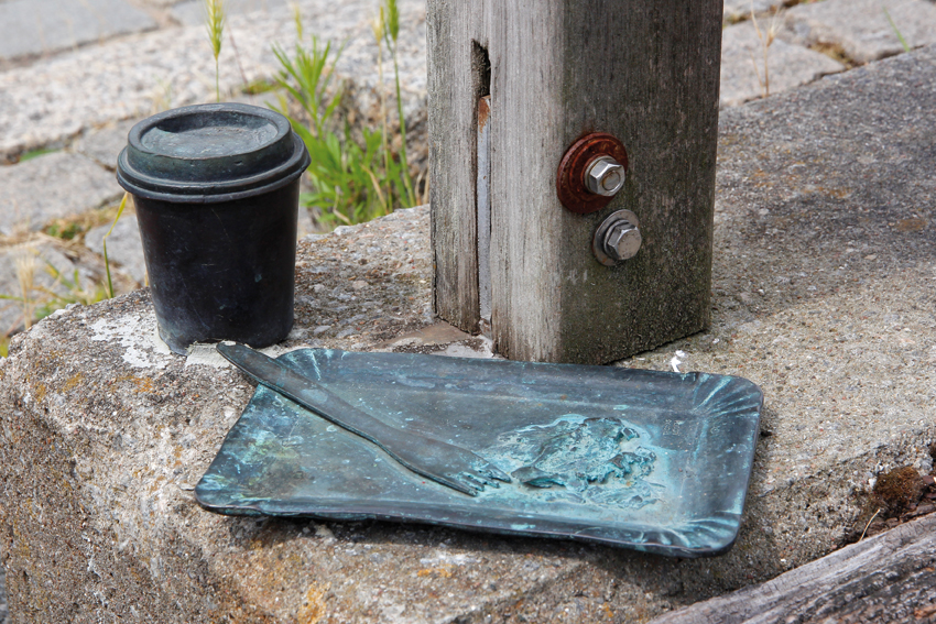 Im öffentlichen Raum finden sich oft Dinge an, die aus verschiedenen Gründen liegen gelassen wurden. Bewusst oder unbewusst gestaltet der Mensch seine Umwelt. So finden sich Pappteller und Plastikbesteck auch bei uns im Flensburger Stadtraum. Diesem Moment hat der Künstler Thomas Judisch ein Denkmal gesetzt. Montiert sind die in Bronze gegossenen Plastiken auf den Sitzmöbeln an vier Orte im Flensburger Hafengebiet.